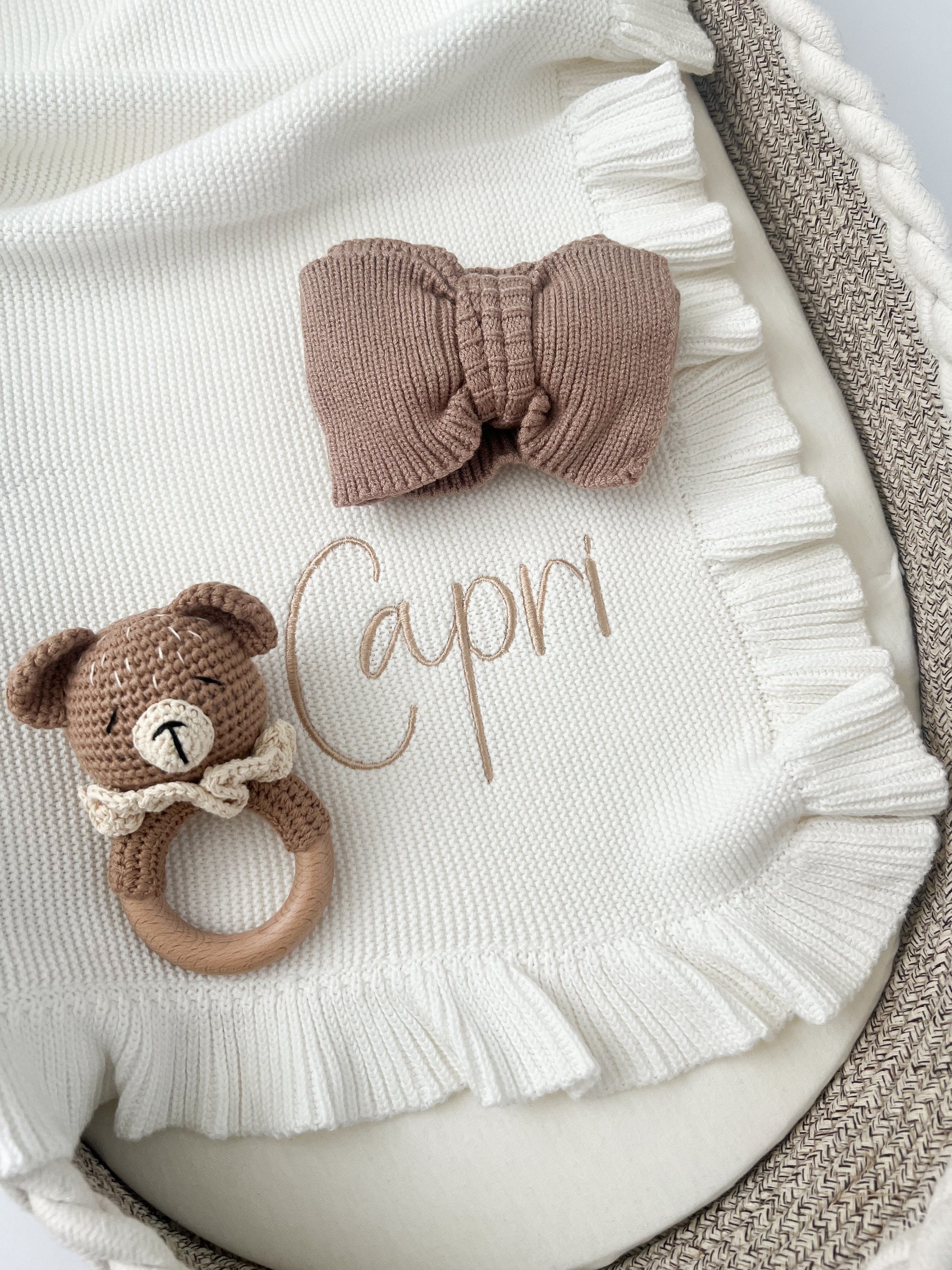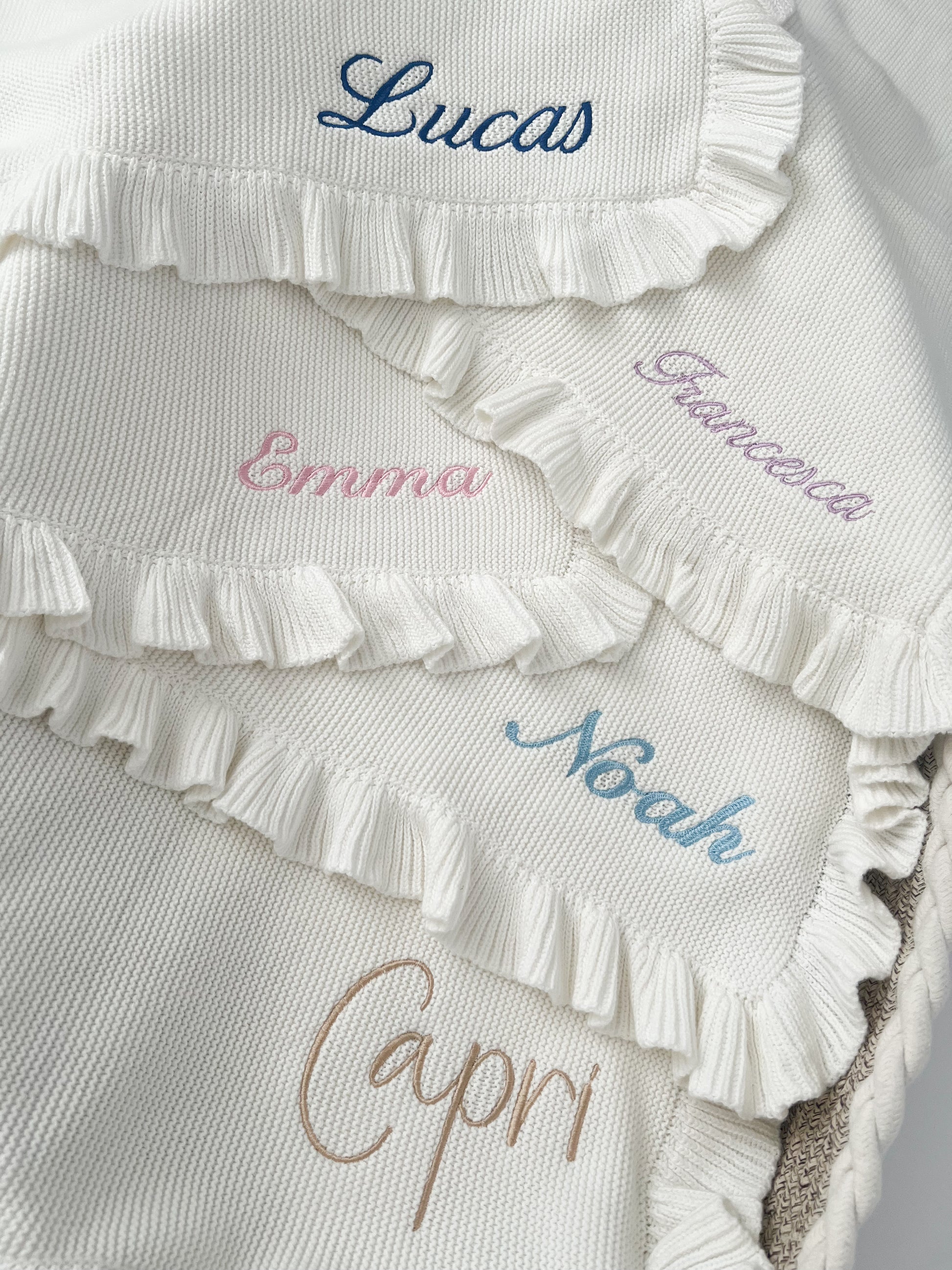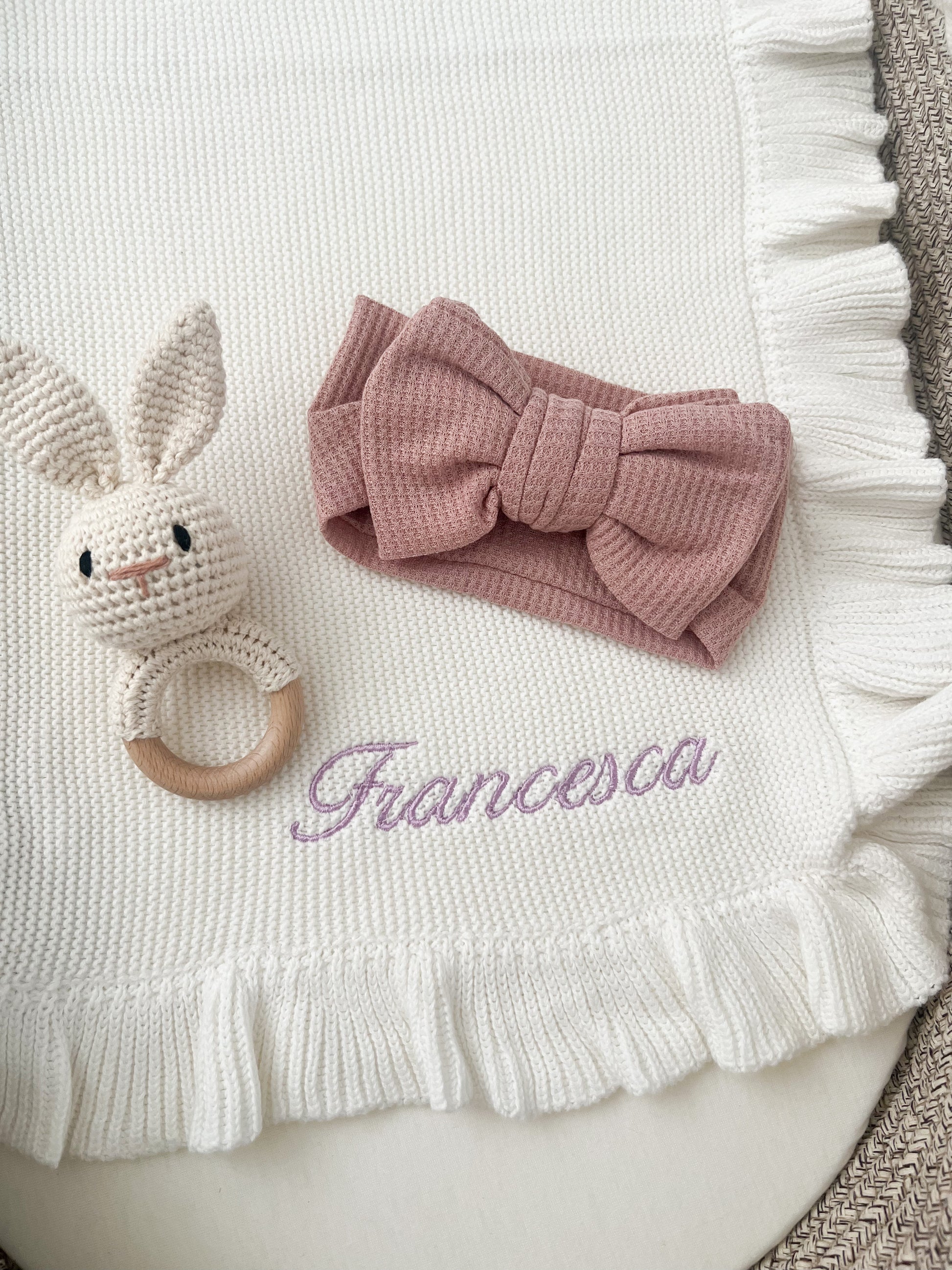 This soft knitted blanket is cozy for draping over your baby ,using for backdrop of those priceless, close-up moments, or even just to snuggle up with ! The blanket’s ruffled edges adds a touch of elegance and style.